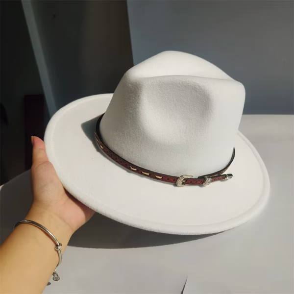 - Ceinture en cuir véritable : Détail raffiné qui apporte une touche premium au chapeau.